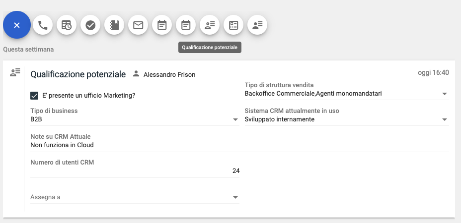 Prendiamo l'esempio di una procedura di qualificazione dei potenziali clienti. Si vuole dunque prevede un'azione specifiche per compilare una serie di domande utili alla fase di qualificazione.