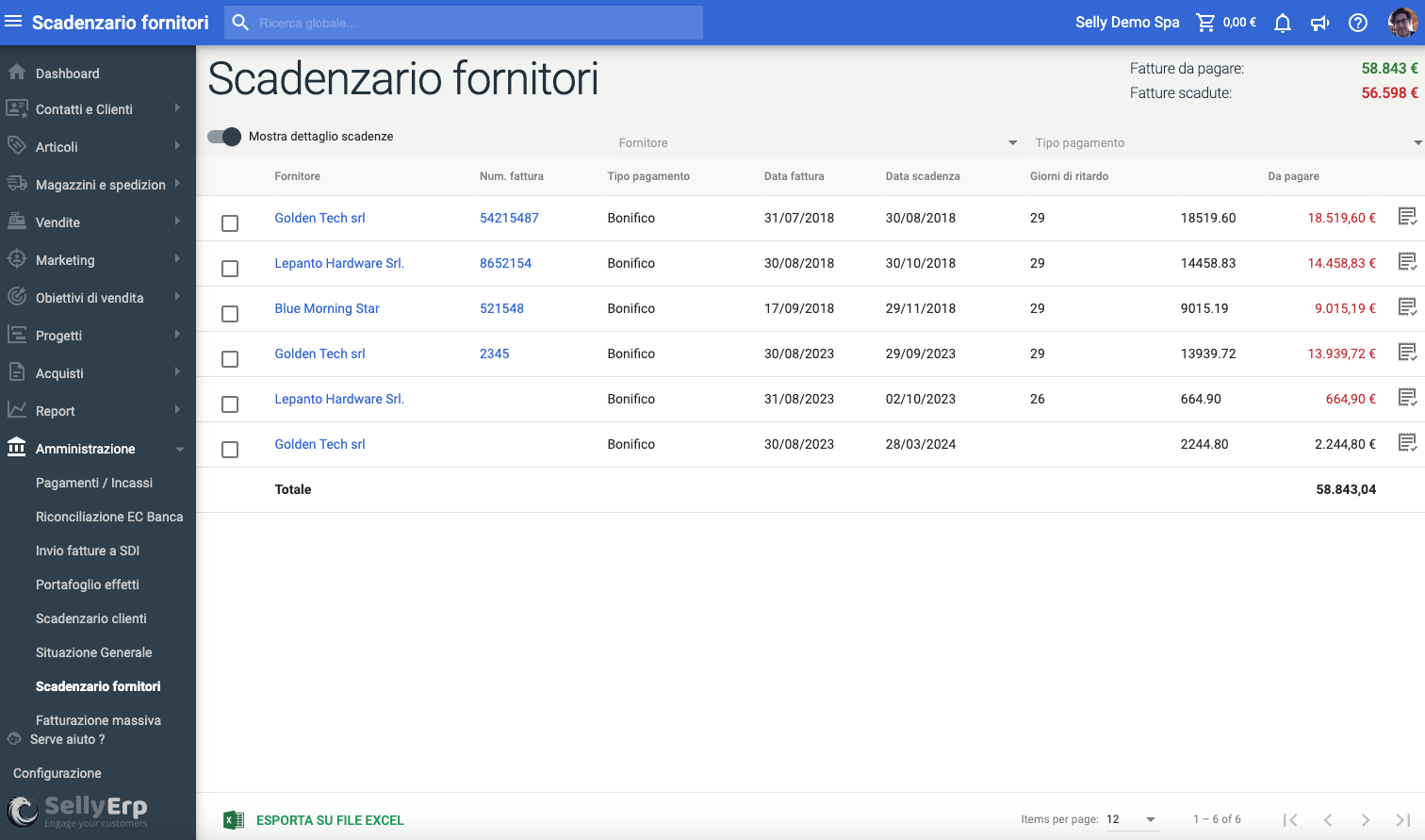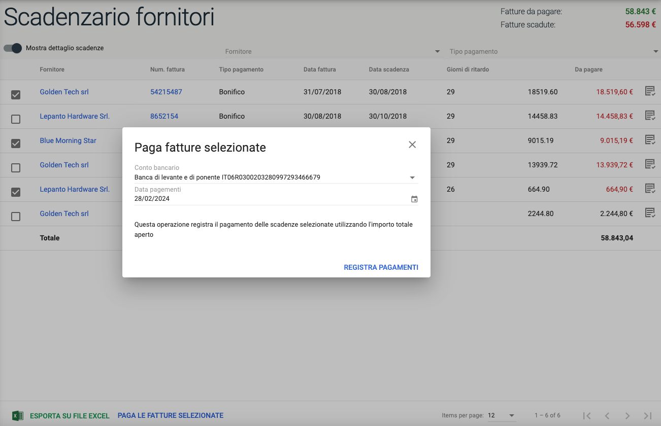 Nella parte superiore destra, possiamo vedere il totale delle fatture da pagare e l'importo delle fatture scadute.