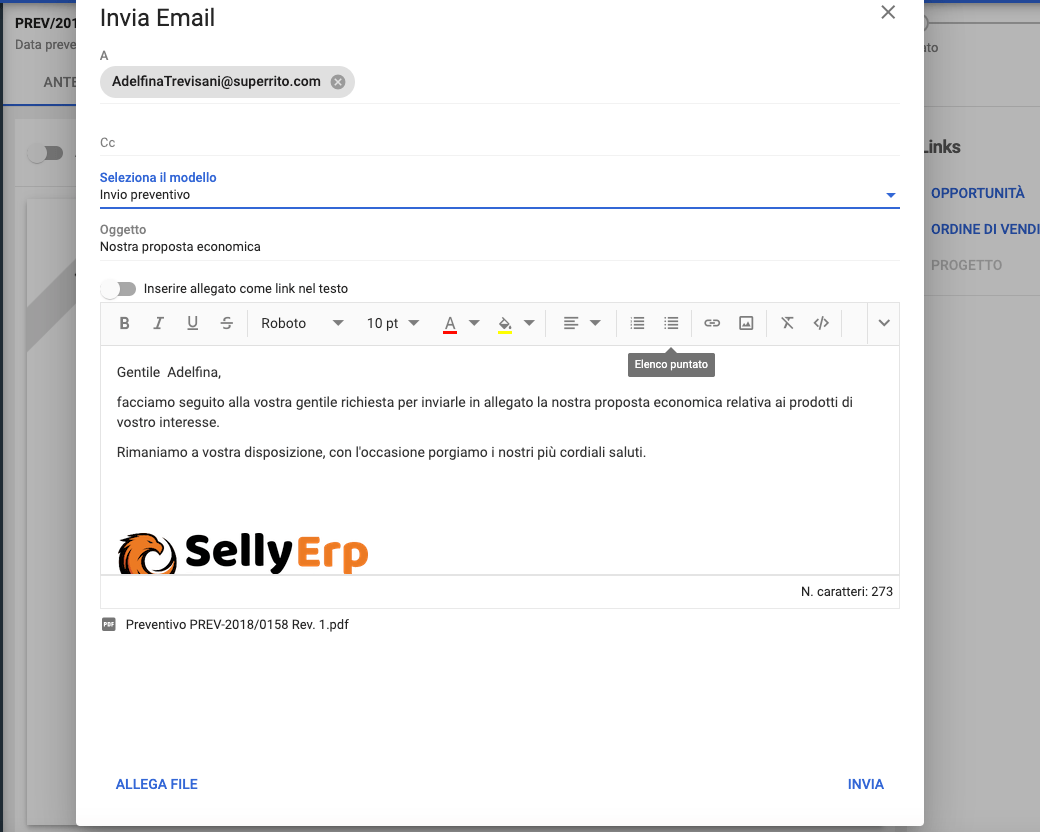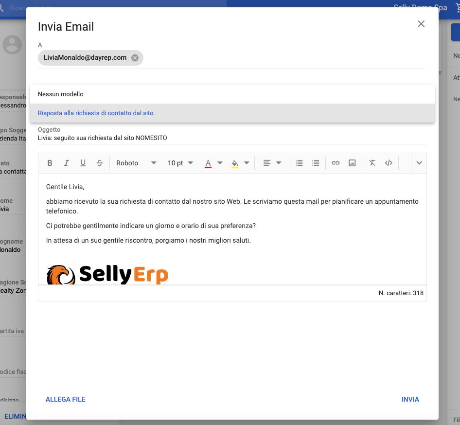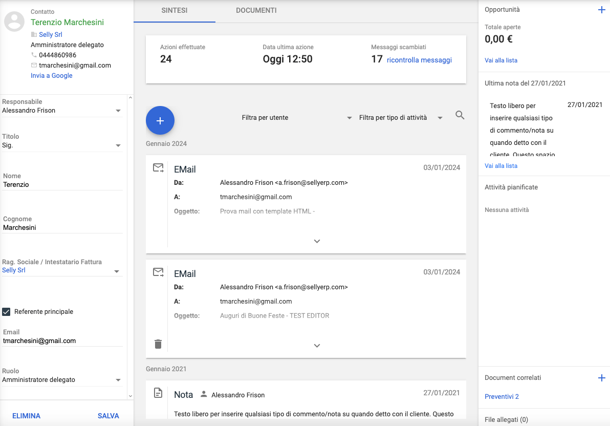 A questo punto potete iniziare a inviare email da Selly Erp e sincronizzare i messaggi nelle schede dei potenziali e contatti.