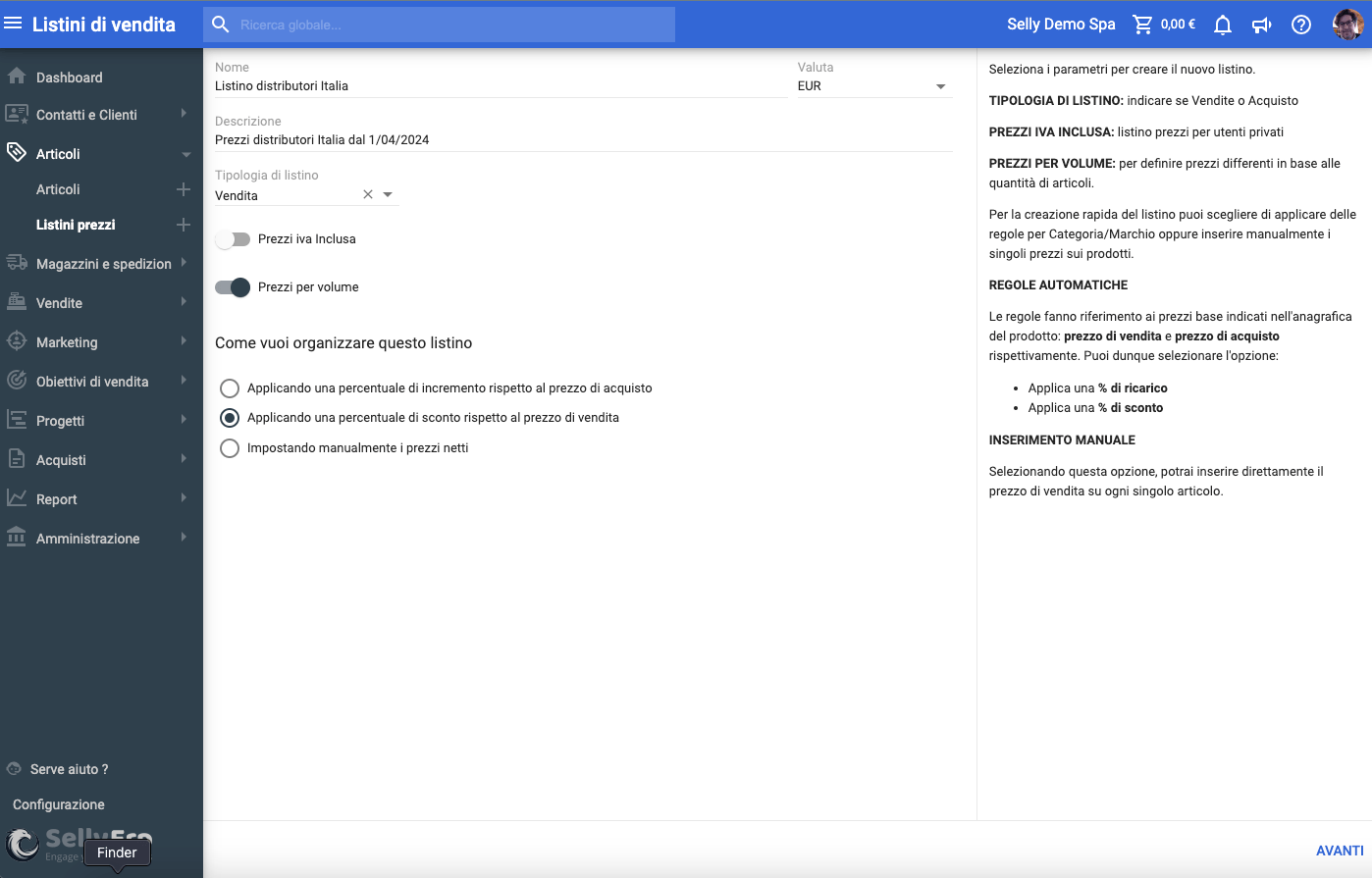 Cliccare su CREA NUOVO LISTINO per accedere alla prima schermata di configurazione.
