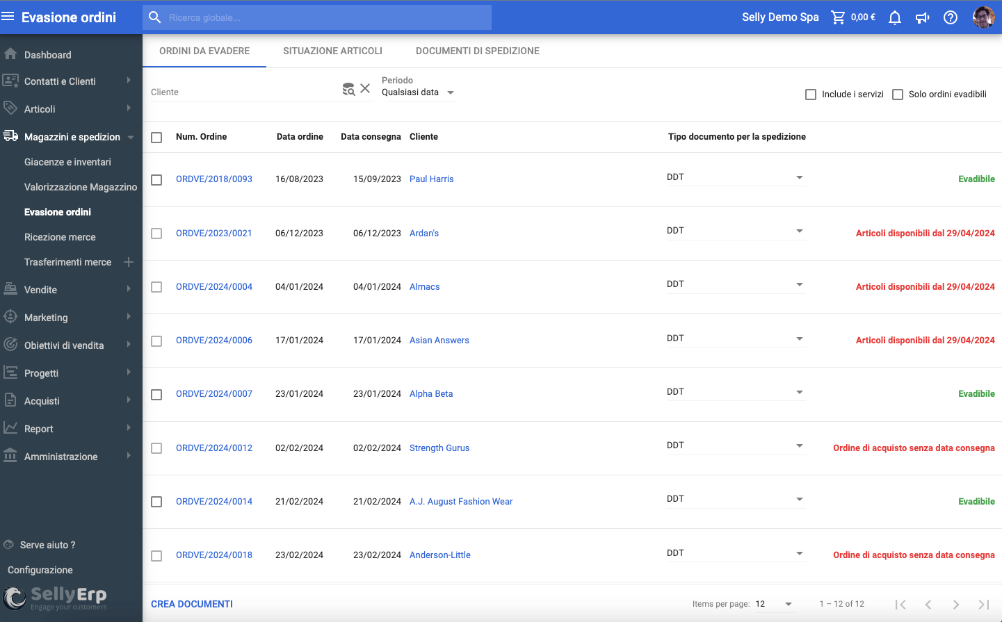 Questa procedura ha la funzione di velocizzare le operazioni di evasione degli ordini di vendita. Pensata per chi si occupa della preparazione dei prodotti da consegnare ai clienti, mette a disposizione una serie di informazioni e automatismi per rendere semplice e veloce la generazione dei documenti di trasporto (ddt) e fatture accompagnatorie.