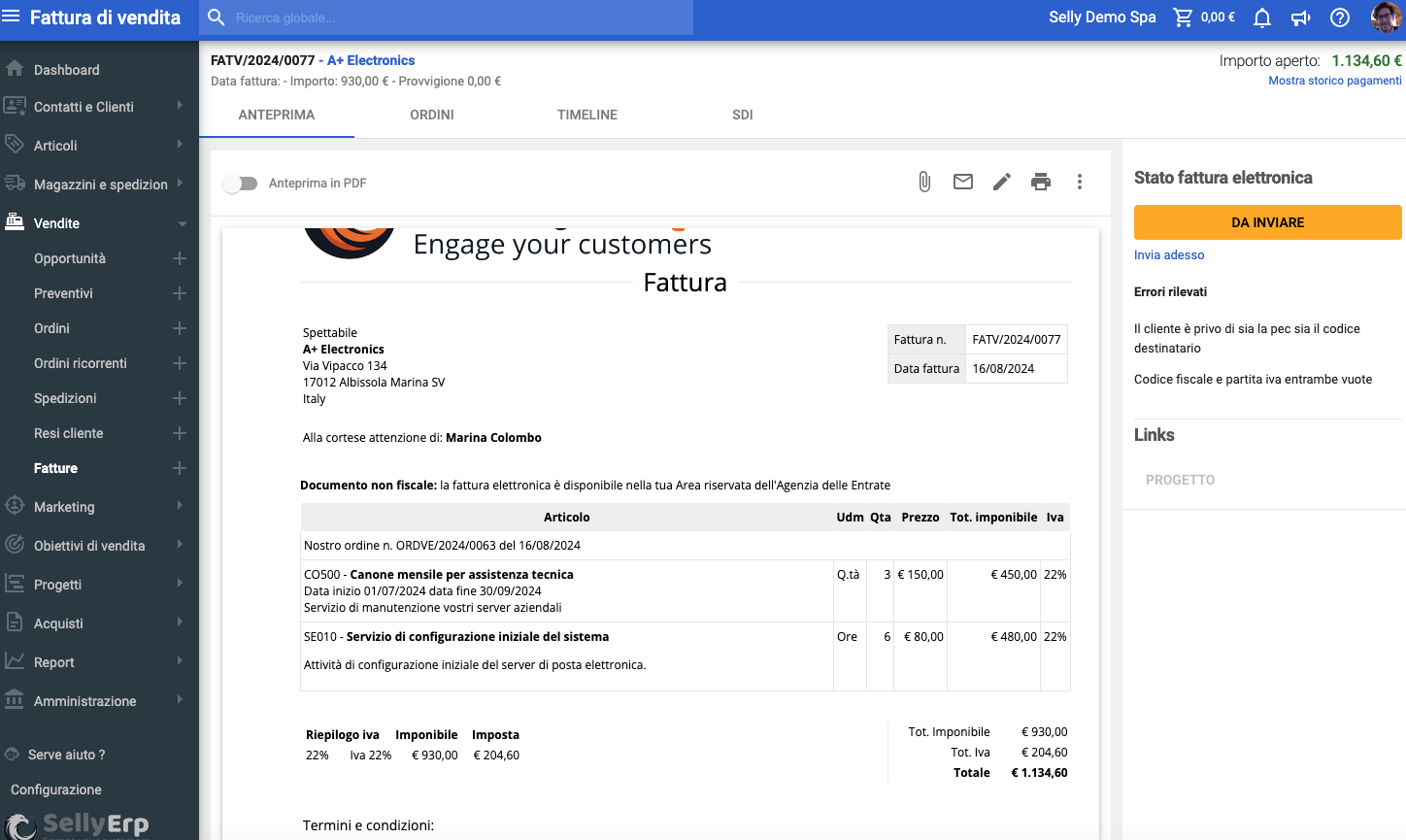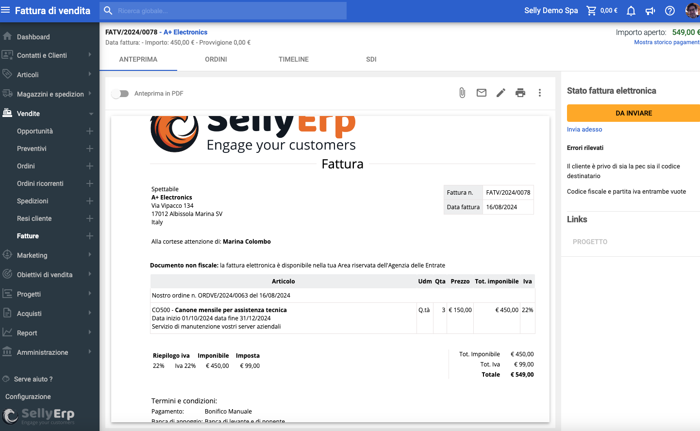 Selly Erp prevede una serie di strumenti specifici per rendere il processo di fatturazione estremamente semplice, veloce e sicuro.