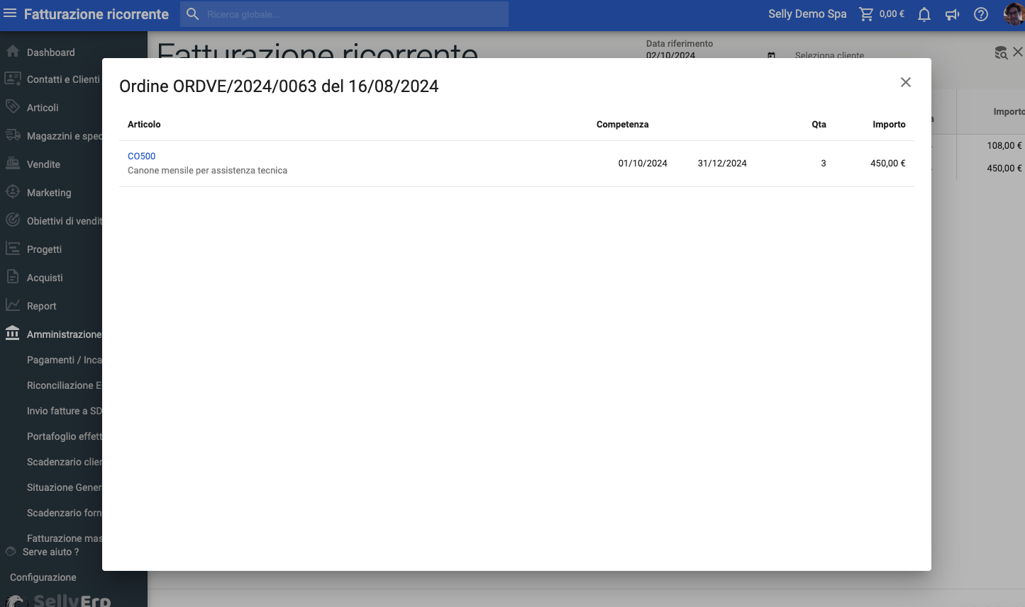 2) Creare gli ordini di vendita e attribuire ai servizi ricorrenti le regole di fatturazione e di competenza