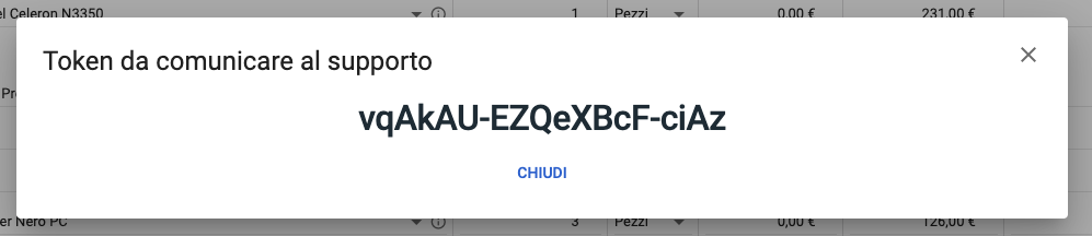 Questa opzione viene richiesta quando il team di supporto tecnico necessita di accedere al vostro ambiente di Selly Erp per controllare il problema con i vostri dati. In tal caso sarà necessario cliccare sul pulsante Crea token per il supporto e quindi copiare il codice generato dal sistema e inserirlo nella riquadro di invio della segnalazione problema.