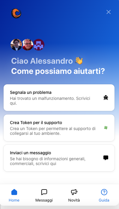 Il servizio si attiva esclusivamente mediante il pannello di chat presente all'interno dell'applicazione.